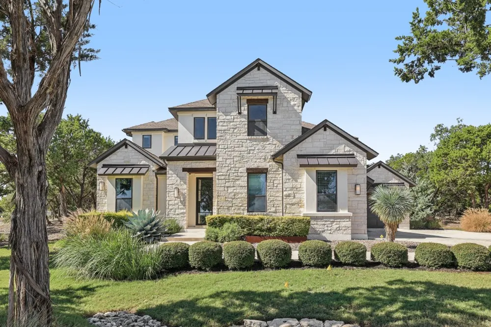 Welcome to 19316 Splendor Ct; an elegant former model home featuring impeccable design & attention to detail throughout. Located on a sprawling 1.1078 acres and backing to a Greenbelt in The Hollows on Lake Travis community, this home feels like a private oasis. Upon arrival, a long driveway leads you to the side entry 3 car garage. Extensive landscaping highlights native plants & an inviting walkway to the front entry. Inside you are greeted w/ soaring ceilings & an abundance of natural light. Beautiful open range wood flooring spans throughout the main floor common areas. At the front is a dedicated office w/ vaulted beamed ceiling & built-in shelving. The formal dining space connects to the kitchen through a butler pantry w/ wine fridge/storage. The gourmet kitchen boasts quartz countertops, built-in SS appliances, an expansive center island, 6-burner gas stove w/ custom tile back splash & canopy style vent hood, and 42” shaker style cabinets w/ upper glass display cabinets & interior lighting. The large walk-in pantry is equipped w/ cabinetry & floating shelves. The kitchen opens to the main living space which hosts a floor to ceiling polished tile fireplace & gorgeous glass slider doors that lead to the covered patio. Relaxing primary retreat on the main level w/ bowed windows offering treed views. Luxurious bathroom en-suite w/ free standing soaking tub, frameless walk-in shower w/ rain shower head, two vanities plus added built-in storage hutch, and an incredibly spacious walk-in closet w/ access to the laundry room. Upstairs you’ll find ample room to entertain, study, or play. The spacious game & media rooms are connected by a mini kitchen w/ bar seating, and built-in microwave & mini fridge. Unwind outdoors under the Texas sized covered patio complete w/ a stone fireplace & serene views. Resort-style community amenities including pools, sport courts, miles of golf-cart friendly trails, lake access via kayak clubs & Northshore Marina, and more. A must see!